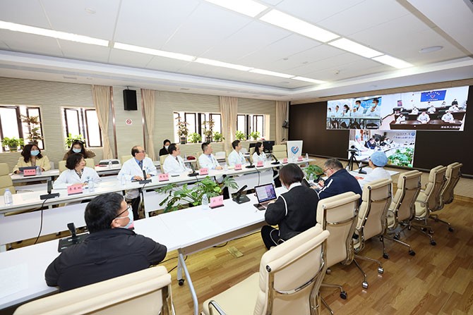 Through the electronic screen and camera, experts from Guangdong Provincial People's Hospital conducted medical consultations with Maoming People's Hospital and Huazhou Third People's Hospital.