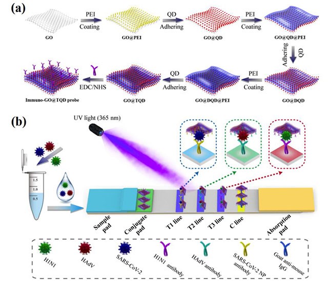 The team members have developed a high-performance flexible membrane-like nanoprobe with single-layer graphene oxide film as the carrier. In addition, they have developed highly-sensitive immunochromatographic detection reagents for joint detection of respiratory pathogens and common pathogenic bacteria respectively by introducing highly-sensitive quantum dot fluorescent labels and surface-enhanced Raman spectroscopy (SERS) molecular markers.