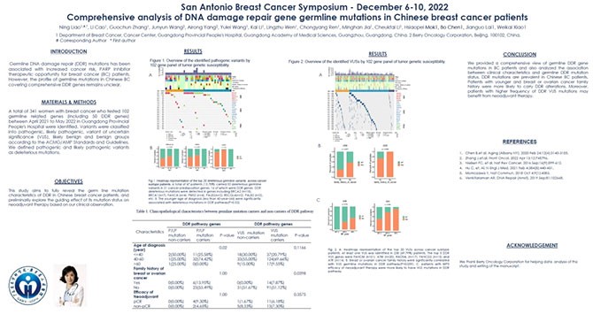 One of their research findings, "Comprehensive analysis of DNA damage repair gene germline mutations in Chinese breast cancer patients", stood out from numerous latest breast cancer studies around the world. This important academic outcome was shown to the world in the form of a poster.