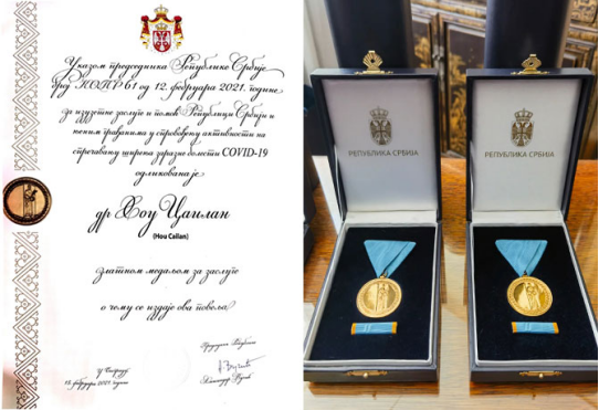 Thank-you letter signed personally by President Vučić and Gold Medal of Merit
