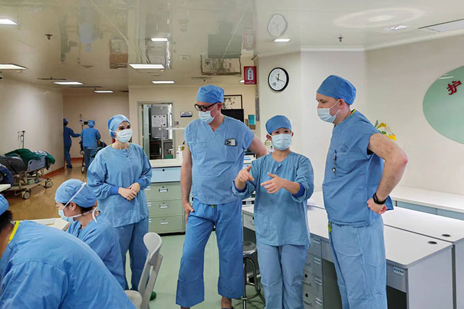 The Operating Room nurse guided the Eastern European doctors on a tour of the operating rooms, delivering explanations and introductions in fluent English, demonstrating our hospital’s advancing international communication proficiency. The skilled surgical techniques and state-of-the-art surgical equipment piqued the interest of the visiting surgeons, fostering a vibrant exchange that carried on into the afternoon academic lecture.