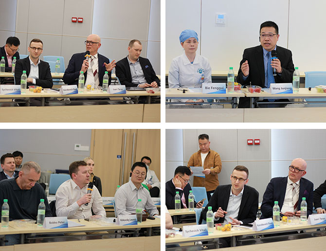 During the Chinese clinical experience sharing session, Dr. Hu Weixian from the Department of Gastrointestinal Surgery presented on “Digestive Tract Reconstruction in Total Laparoscopic Gastrectomy for Gastric Cancer”, explaining different methods of digestive tract reconstruction while also sharing surgical experience from the department. Dr. Lü Zejian from the Department of Gastrointestinal Surgery shared a specialized technique of ICG fluorescence laparoscopy and its application in gastrointestinal surgery, highlighting the advantages of ICG through surgical case examples. Dr. Tian Dan from the Department of Thoracic Surgery shared recent advances in perioperative immunotherapy for lung cancer based on clinical diagnosis and treatment experience, while also discussing and looking ahead to hot topics in immunotherapy. Dr. Xu Tengfei from the Department of Anesthesiology introduced the basic overview of his department to the Eastern European doctors and shared our hospital’s collaborative experience in implementing Enhanced Recovery After Surgery (ERAS) in the field of anesthesiology through case examples. The Eastern European doctors also shared their experiences, mainly presenting an overview of the Eastern European healthcare system.