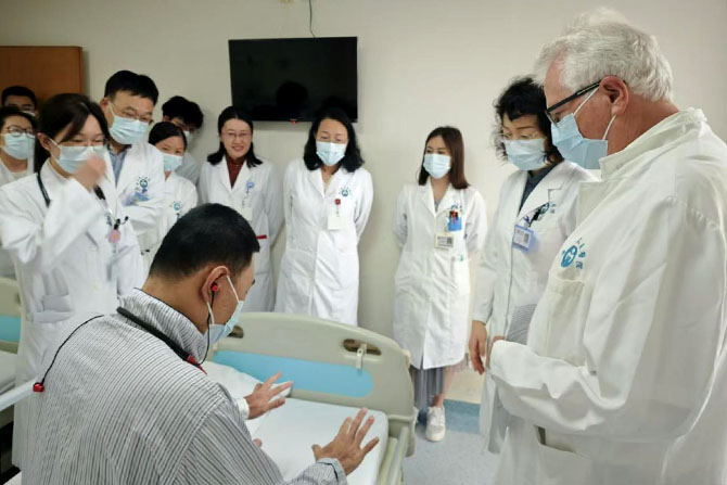 During the difficult case MDT discussion, Prof. Burmester participated alongside experts from relevant disciplines, including Associate Chief Physician Dr. Jiang Xin from Department of Cardiology, Associate Chief Physician Dr. Wu Haijun from Department of Radiology, and Dr. Zhao Manzhi from the Department of Respiratory and Critical Care Medicine. The discussion delved into a rare case, with Prof. Burmester offering valuable suggestions and guidance. He highly praised the diagnostic and treatment level of the Department of Rheumatology, expressing that he fully enjoyed the academic atmosphere and looked forward to his next visit.