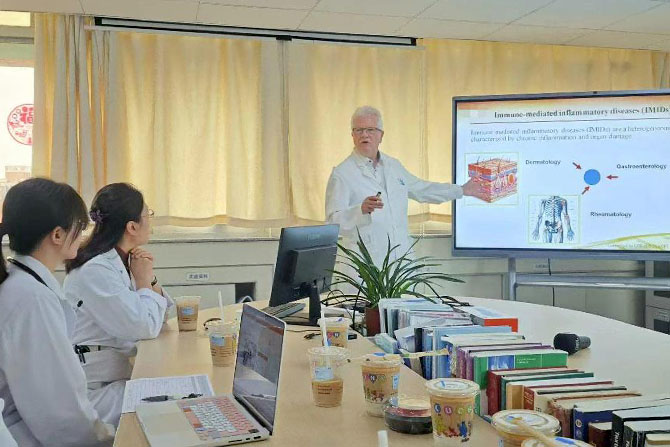 Subsequently, Prof. Burmester delivered a lecture on “Long-term Application Strategies of JAK Inhibitors in Inflammation Control,” sharing the development history of rheumatology medications, the clinical application of new small molecule targeted drugs, and the latest trends in international prospective clinical research. During the interaction session, Prof. Burmester actively engaged with our hospital’s doctors, stating that he would closely follow future clinical research results from Chinese rheumatology patients.