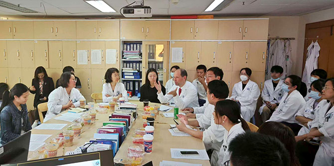 Chief Dr. Li Yang warmly welcomed Prof. Aringer and briefly introduced the development history, clinical characteristics, and recent achievements in the research and teaching of the department. During the academic exchange session, Prof. Aringer visited the ward and participated in detailed clinical case rounds and multidisciplinary team (MDT) discussions.
