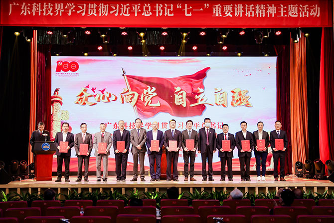 In the afternoon of November 8, a thematic event for the Guangdong science and technology community to learn and implement the spirit of President Xi Jinping’s “July 1st” important speech, organized by the Guangdong Provincial Association for Science and Technology, Department of Science and Technology of Guangdong Province, Guangdong Academy of Sciences, and Chinese Academy of Sciences Guangzhou Branch, was held at the Science Hall of the Guangdong Science Center. At the event, some titles and prizes were awarded, including 2021 “Excellent Scientific and Technological Worker of Guangdong Province”, the 16th Ding Ying Science and Technology Award of Guangdong Province, and “Rural Science and Technology Special Correspondent”.