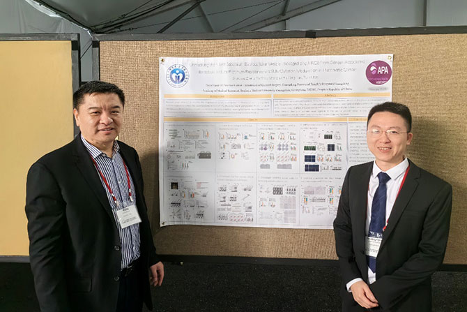 Apart from invited presentations, Professor Chen Rufu's team also presented a poster titled “Unmasking The Silent Saboteur: Extracellular Vesicle-Packaged Circbirc6 From Cancer-Associated Fibroblasts Induce Platinum Resistance Via Sumoylation Modulation In Pancreatic Cancer”. It revealed the precise mechanism by which tumor-associated fibroblasts regulate pancreatic cancer resistance to platinum-based chemotherapy through sumoylation modification. Professor Min Li, Chair of the APA and Vice Dean of the College of Medicine and Associate Dean of the Cancer Hospital at the University of Oklahoma, spoke highly of the academic content presented by Professor Chen Rufu’s team and appreciated their contributions to the field of neuroinvasion in pancreatic cancer.