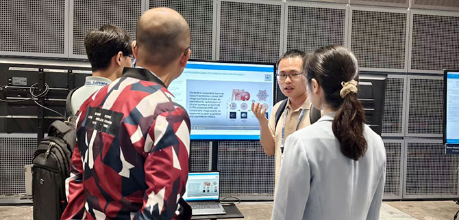 Dr. Zhao Kaixuan delivered an academic presentation titled “Synthesized Gd-EOB-DTPA-enhanced hepatobiliary phase MR images via generative adversarial learning,” which focuses on the application of next-generation artificial intelligence technology in clinical assistance. The research leveraged generative adversarial networks (GANs) to achieve early prediction of Gd-EOB-DTPA enhancement, a technique that holds promise for significantly reducing clinical scanning time and improving scanning efficiency. This research was awarded the Gold Award at the ISMRM 2024 and sparked lively discussions at the event.