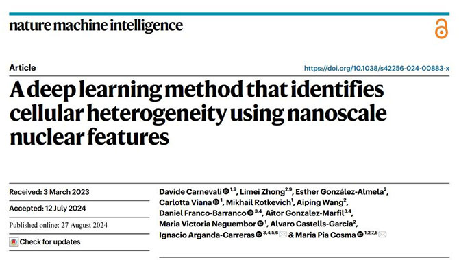 A research team from the Pia Cosma Lab at Guangdong Provincial People’s Hospital has collaborated to develop an artificial intelligence algorithm called AINU (Artificial Intelligence of the NUcleus), which can identify cell types, distinguish between cancerous and normal cells, and detect the very early stages of viral infections within cells. The findings were published in Nature Machine Intelligence (Zone 1 Journal of the Chinese Academy of Sciences) on August 27, 2024, under the title “A Deep Learning Method that Identifies Cellular Heterogeneity Using Nanoscale Nuclear Features”. These discoveries pave the way for using AI technology to improve early cancer diagnosis, identify potentially metastatic cancer cells, or diagnose viral infections in clinical settings.