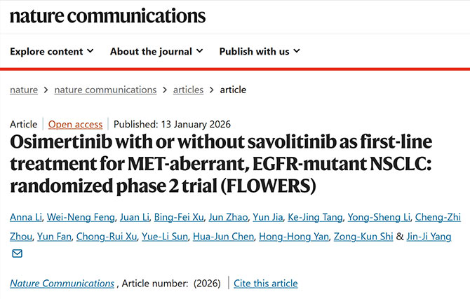 登顶 Nature Communications!杨衿记团队FLOWERS研究确立肺癌双靶治疗格局