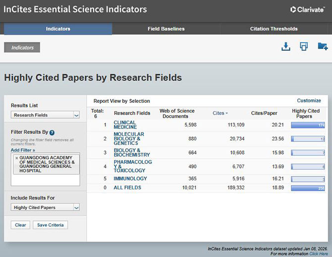新突破!我院共5个学科进入ESI全球前1%