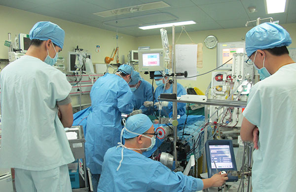 周成斌主任带领的体外循环几位同事、心外儿科的滕云医生,心儿科的石继军主任也在最短的时间内到达PICU。再次床旁B超评估心功能,明确ECMO指征。定位、消毒、铺巾、切开暴露血管。尽管血管比预期的要细,对于这支团体不是问题,只是多了一份仔细,多了一份温柔。终于成功置管,接ECMO,运转机器,小佳佳的心率,血压,循环迅速好转。