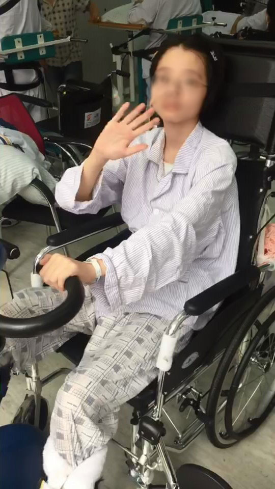 康复中的小琳向医生挥手