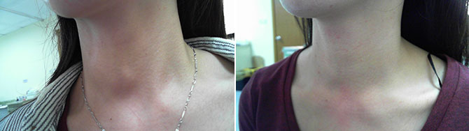 22岁的小欣(化名)两年前发现颈部肿大,伴有心悸,查甲状腺B超时双侧叶多发甲状腺结节,甲状腺ECT检查显示甲状腺右叶热结节,甲状腺功能提示轻度甲状腺功能亢进。当时诊断“甲状腺高功能腺瘤”。按传统的治疗方案应该首选碘131治疗,其次选择外科手术和药物治疗。患者由于担心碘131的副作用和手术疤痕问题,暂时选择药物保守治疗。服用控制心率的药物后心悸稍缓解,但复查甲功一直维持轻度甲亢。