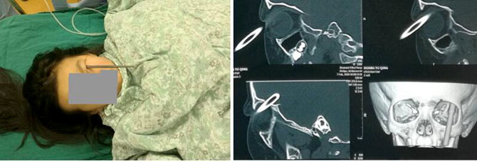 小女孩是由于拿着筷子奔跑时跌倒,筷子戳进眼睛经眼眶壁进入颅内。家属急忙送当地医院,做了CT检查后发现筷子进入了颅内,又急忙送入我院治疗。神经外科主任周东亲自查看了患儿病情,分析CT结果后当即决定行急诊手术拔除筷子。周东主任医师和王鹏副主任医师一起完成了手术,眼科医生同时检查了眼睛受伤情况,所幸眼球并无明显损伤。术后立即行急诊CT检查,颅内并无新鲜出血。参与会诊抢救的各位专家才松下一口气。