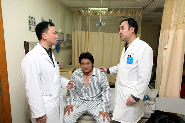 唐继鸣主任(左)、葛平江主任检查患者伤口