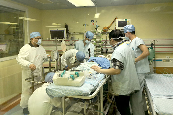 2019年1月21日中午,广东省人民医院ECMO团队接到梅州当地医院紧急会诊邀请:当地一名4岁儿童爆发性心肌炎,心源性休克,出现反复室颤、心脏骤停,生命危在旦夕,邀请省医PICU和ECMO专家会诊,并请求ECMO(体外膜肺氧合)支持。PICU郭予雄主任和心外科体外循环室周成斌主任接到会诊请求后,立即评估患儿病情,制定了周密的小儿ECMO建立及长途转运方案,启动ECMO转运团队,携带ECMO设备、手术抢救用品、转运设备,由周成斌主任亲自带领ECMO小组驱车400多公里奔赴梅州当地医院。