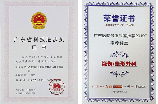 多年来,烧伤与创面修复外科在高质量完成重症烧伤救治任务的同时,积极选派医生外出学习,将显微外科、血管外科、足踝外科等新技术融入创面修复治疗,与兄弟科室广泛合作,治愈了大量复杂难愈性创面、开胸术后难愈性伤口、肿瘤切除后大面积皮肤软组织缺损等病例,积累了丰富的临床经验。郑少逸等在国内首次制定了开胸术后难愈性伤口的分级和治疗策略;刘族安等发表了多篇高质量的显微外科技术应用文章。2018年,陈华德、卞徽宁等“严重深度烧伤序贯性救治技术的应用”获得了广东省科技进步二等奖(第一完成单位),为本科的烧伤救治工作做了一个漂亮的阶段小结。