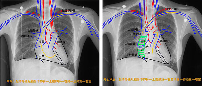 近期,心内二区收治了一位复杂先心外科术后的年轻女性,因心跳慢需植入起搏器。但患者术后上腔静脉及下腔静脉(经人造血管)均连于右肺动脉(心外管道全腔静脉-肺动脉连接术,TECPC),同时缝闭三尖瓣口,起搏导线无法由常规路径进入右室,即从锁骨下静脉、上腔静脉进入右房,并跨三尖瓣进入右室,按照以往经验患者需行心外膜起搏。