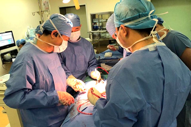 手术当日,由张余主任、贲晓松主任、詹建东主任、孙传伟主治医师接力完成手术。