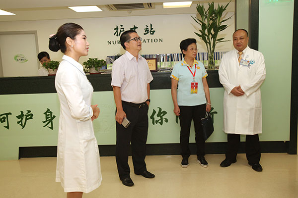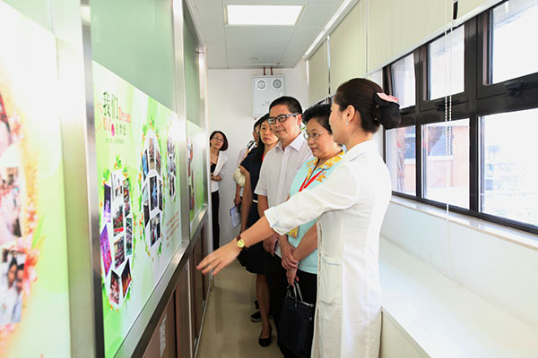 国家卫计委直属机关工会常务副主席杨志媛(右三)、团委书记徐宏(右一)考察国号创建情况