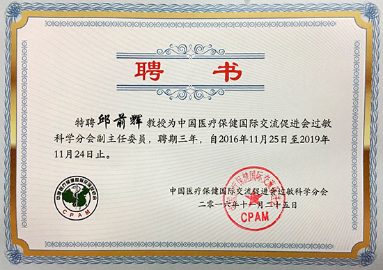 11月25日,中国医疗保健国际交流促进会(简称中国医促会,CPAM)在北京召开过敏科学分会成立大会。中国医促会过敏科学分会第一届委员会共有167名委员组成,来自全国各省市自治区的医疗机构和高等院校,包括耳鼻喉科、呼吸科、儿科、皮肤科、变态反应科以及基础研究和转化医学等过敏科学各专业领域的专家学者,我院耳鼻喉科邱前辉主任当选副主委。