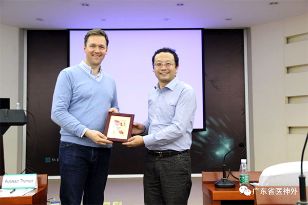 3月22日,德国柏林Charite大学医学院小儿神经外科主任Thomale教授一行来到我院开启了“中德脑积水诊疗沙龙”。本次会议由广东省人民医院神经外科周东主任主持,吸引了广州市各医院同仁及东莞、珠海等省内各同道的参与。