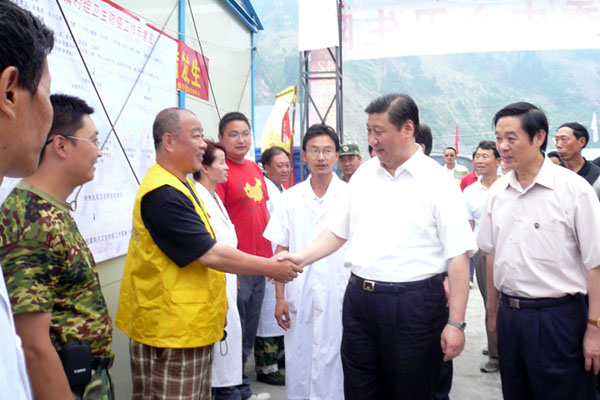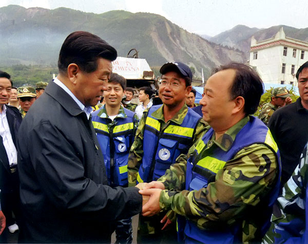 普外科主任医师陈盛同为第一批救援队员,他回忆到,5月13号晚上,我院8名医疗队员赶往映秀镇等待坐冲锋舟时,在紫坪坝水库睡了一晚。当时,水库周围都是几千米高的高山,余震一来地就摇的跟筛子一样,整晚狂风暴雨,非常恐怖。那个时侯,大家连水都不知道去哪里喝,吃东西也只能靠军用干粮和方便面顶过去,但是大家都是一条心,为了救治灾民,有的立了军令状,有的还写下了血书。