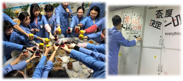 在年二十九的中午,为仍然坚守在岗位的同事组织一次百家宴,每人准备一份自己的家乡菜。让在广州过年的同事尝到家乡的味道同时尝到其他地方风味。