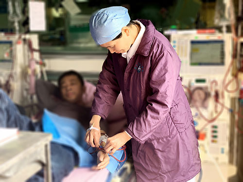 她,是一名坚守于血液净化中心二十余载的主管护师,2019年2月是她荣退之际,今天的她本可以申请休假,但她也深知周一是科室最忙碌的日子,尽管身体抱恙,她还是坚守岗位,数年如一日,恪守细节、兢兢业业。