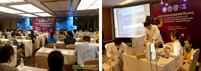 大会合办了首届2019广东省护理学会神经急危重症护理实践与管理学习班,会议围绕神经急危重症护理管理、脑卒中并发症护理、脑卒中专科护士的职业培训、护理安全文化理念及护理质量等问题展开了深入的探讨,会场人气爆棚,好评如潮。此外,本次大会克服了各种困难,首次对缺血性脑血管病的介入治疗进行了直播。神经电生理培训会场还现场同步演示了TCD发泡试验+右心声学造影等操作,此举措大大的提高了神经介入及电生理技能的培训质量和效果,受广大参会人员一致点赞!