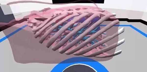 ▲在VR的视觉下,人体的胸廓、心脏结构、大血管等信息,清晰可见。