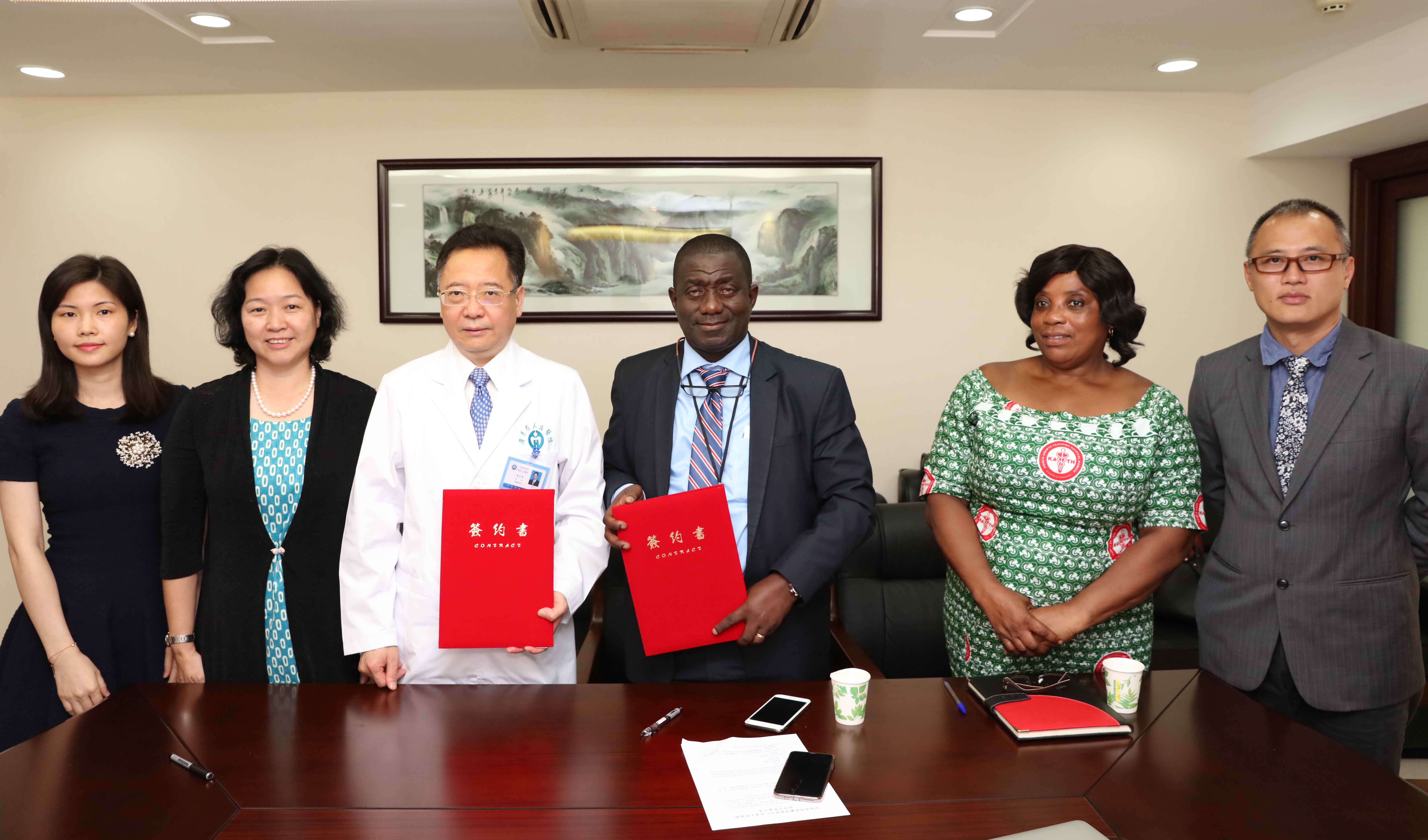 余学清院长强调,我院将一如既往地继续支持加纳医疗事业的发展,进一步加强合作交流。根据库玛西教学医院的医疗需求,结合我院的重点学科优势,双方在心血管、肾脏病、重症监护以及内分泌专科等领域达成合作共识,并签署了合作备忘录,双方就人才培养、医疗援助、远程会诊等方面展开合作。这次加纳代表团的回访,是余学清院长今年2月在加纳出席西非国际健康峰会期间,提出共建“一带一路”卫生健康事业合作取得的重要进展。