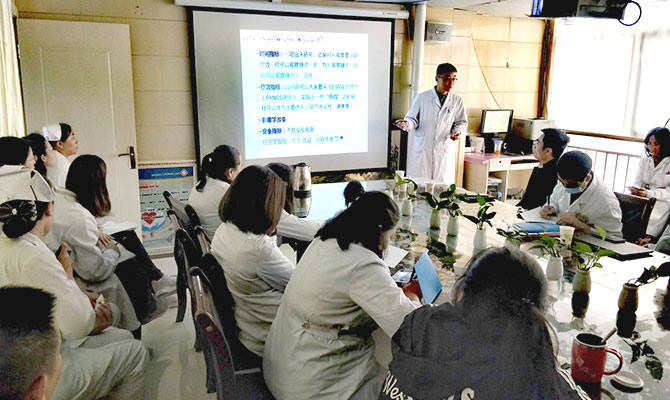 除了积极参与科室手术之外,滕云医生还对科室同事进行了心脏外科相关知识的讲课培训,并制定了两周一次的理论学习。滕医生通过图文并茂的方式,回顾了心脏外科发展的历史,讲述了心脏外科的发展,从举步维艰到绝地中兴、柳暗花明,并向那个伟大时代的心脏外科的拓荒者们表达了崇高的敬意,大大提升了同事们对心脏外科事业的热情。