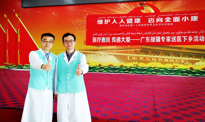 医疗援疆是贯彻落实党的十九大关于扶贫攻坚工作的新思想、新目标和新征程是重要战略部署之一,也是我院的优良传统。今年医院派出了由心外科滕云医生和省精神卫生中心刘向欣博士组成的双“心”医疗组合,作为2019年度广东省第四批“组团式”援疆医疗队队员,一个月前赶赴喀什地区第一人民医院,开展为期一年的援疆工作。