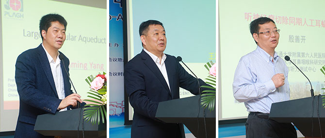 聋病教育部重点实验室主任、973首席科学家、中国人民解放军总医院杨仕明教授讲解大前庭导水管综合征听损患者的及早干预和诊断,杨主任强调大前庭导水管扩大综合征为耳科医生关注的全球性问题,早发现,早干预,早治疗尤为重要。中华医学会、中国医师协会耳鼻咽喉科分会耳科学组组长,山东省耳鼻喉医院王海波院长分享中耳乳突手术的基本问题与原则,阐述了中耳乳突手术国内外近些年来发展状况。中华医学会耳鼻咽喉头颈外科学分会副主任委员、上海交通大学附属第六人民医院副院长殷善开教授分享了一个特殊病例,听神经瘤的听力重建,病情复杂,案例分析精彩纷呈,跌宕起伏。中国遗传学会理事、陆军军医大学附属第一医院医学遗传中心主任袁慧军教授带来最前沿的耳聋出生缺陷产前及胚胎植入前干预的关键技术研究。广东省人民医院耳科主任吴佩娜教授总结了严重内耳畸形人工耳蜗植入术后听觉效果的初步分析,并指出人工耳蜗术前影像学评估的重要性。中华耳鼻咽喉头颈外科杂志编辑、北京听力协会常务理事金昕教授讲解耳科临床论文的撰写与投稿的重要事项,给临床医生如何开展临床研究指明方向。