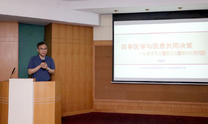 乔贵宾主任作了《叙事医学与医患共同决策:从患者的主观感受出发解决医疗问题》的报告。他结合多年从医经历谈到,做叙事医学的目的,就是去关爱病人,倾听他们的主观感受,他们的症状,他们怎么感觉不舒服,而不只是冷冰冰的各项检查数据,这些都是对病人的治疗也是会有很大帮助的。
