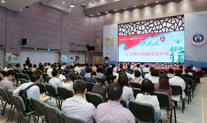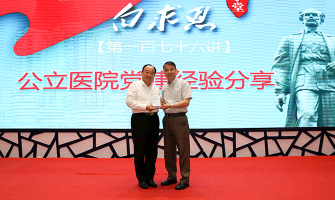 江苏常州素有“季子故里,诚信常州”的美誉,是全国“道德讲堂”发源地,近年来,江苏省常州市第一人民医院在公立医院的党建、人文建设方面颇有建树。2019年5月16日,白求恩学堂第176讲邀请到常州市第一人民医院党委书记张晓膺分享公立医院党建经验。会上,张晓膺书记作《加强公立医院党的建设初探》专题报告。医院全体中层干部和党务干部近200人参会学习,党委书记耿庆山出席并讲话,党委副书记何斌主持会议。