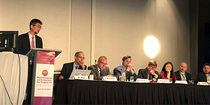世界耳内镜大会是目前世界上耳内镜外科领域的最高级别会议,本次会议由哈佛大学附属麻省眼耳医院主办,国际上耳内镜领域的最新成果在此次大会上都得到了充分的展示。我院由崔勇主任医师和黄惠娥、张弛两位研究生组成的团队,充分展示了我院近年来在耳科内镜外科领域的独创性贡献。
