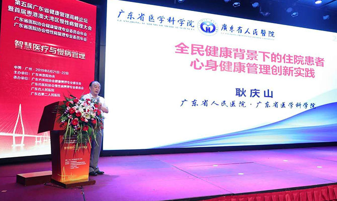 我院党委书记耿庆山报告了全民健康背景下的住院患者心身健康管理创新实践工作。广东省云医院副总经理罗勤、华为技术有限公司医疗行业总经理郭希鹏分享了互联网医院下的慢病管理、全联接医疗服务大健康5G+智慧医疗应用等专题。广东省第二人民医院院长兼党委书记田军章发布了广东首部《AI大健康管理蓝皮书》和全国首个人工智能大健康管理平台。 香港医学会何仲平会长介绍了香港地区对高血压和糖尿病肾病两大慢病的防控策略。