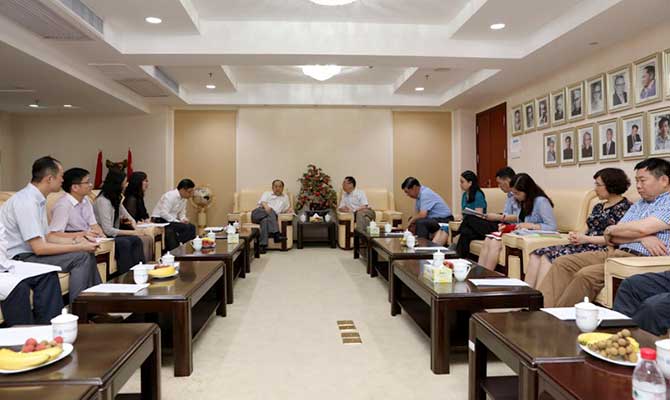 6月26日上午9点,欢送第九批援藏干部人才座谈会在办公楼904会议室召开。医院党委书记耿庆山、院长余学清、党委副书记何斌、副院长杨小红、相关职能处室和研究所负责人、党总支书记20余人出席了座谈会,共同欢送省第九批援藏干部王晟、黄晓忠、谢兆丰、陈亮,代表医院给予亲切问候和关怀。何斌副书记主持座谈会。