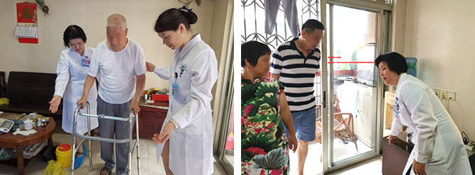 6月26日上午,护理部陈凌主任及魏丽君科长来到东综合二区,了解上门服务对象的病情及查看相应的物品准备情况。中午12点徐永能护士长和另一名上门人员陈护士如约到达老人家中,为老人测量生命体征以及血糖,老人生命体征平稳,血糖稍偏高,徐护士长询问了为老人最近的便秘情况,随后对老人进行了缓解便秘的腹部按摩,并对按摩手法及注意事项进行现场教学,同时指导老人及家属如何从饮食及生活习惯上缓解便秘。因老人腿脚无力,行走时需要使用助行器,同行的陈护士耐心的向患者讲解了助行器的正确使用。此外徐护士长和陈护士认真查看了老人的居住环境,指导家属如何布置适宜老年人居住的环境,例如:洗手间里面安装扶手、地面不要太滑、家具的边角要包裹起来等,提高老年人居家的安全性与舒适性。为维护双方的权益及确保安全,操作前、中、后上门人员都进行了现场照片实时上传。操作结束后徐护士长与老人家属双双打开网络信息平台,对操作内容签名确认,并进行满意度互评。老人家属表示,很愿意接受这样的上门服务,解决了病人及家属的许多实际困难,感觉服务很贴心,网络预约也很方便,如果以后有需要,还会尝试预约上门护理服务。