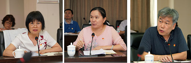 上午的专题由副院长袁向东主持。何斌、徐力新同志作主题发言,计财处、老干处、工会、平洲分院主要负责人和大内科、心研所、综合临床总支书记作重点发言。