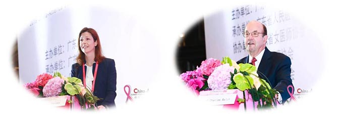 我院余学清院长、吴一龙教授,美国驻华广州副总领事Jennifer Sheldon女士、美国德克萨斯大学西南医学中心Charles Balch教授分别致辞。余学清院长在会上对我院乳腺科的学科发展提出了更高的要求,表示在医院登峰计划的激励资助下进一步搭建可持续的高水平乳腺癌诊疗研究平台,进一步深化国内外高水平团队间的务实合作,使得乳腺癌最新诊疗成果惠及更多患者。