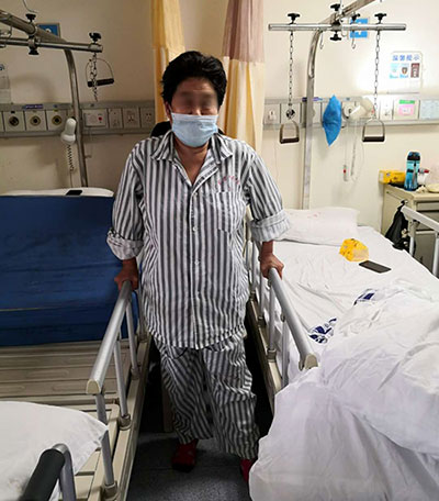 这是2020年新年开工的第一台手术,梁医生在朋友圈记录了这次“特殊”的手术。“虽然外面人心慌慌,可是一旦进入手术室后,心情非常平静,一切按照常规进行。”他写到,“颈椎严重压迫,手术非常顺利,希望手术后能顺利恢复。”精湛的技术和流畅的团队合作,正如梁医生所期盼的,冯阿姨术后第二天已经可以坐起,自觉下肢的肌力和感觉均有明显的恢复,冯阿姨和家人松了一口气。术后第四天,切口愈合好,经测评下肢力量已有少许恢复,可以出院回家康复。出院那天,虽然带着口罩,也没能遮住冯阿姨眼中浓浓的笑意。