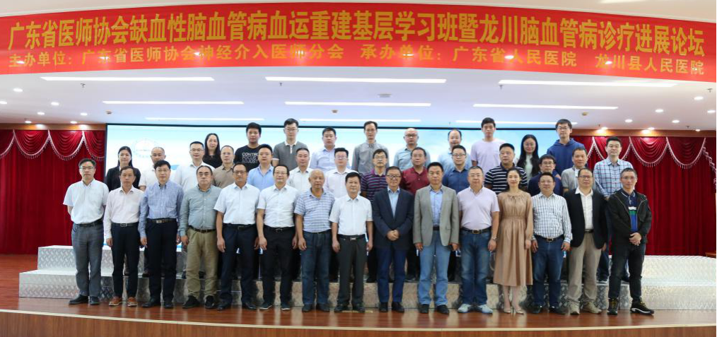 为整合我省脑血管病优势教育及人才资源,补齐粤东北地区县域医院发展的短板,提升县域医院脑血管病救治能力,践行我院及我省县域医共体建设要求。由广东省医师协会神经介入医师分会主办,我院神经外科、龙川县人民医院和医师协会血运重建专业组共同承办的“缺血性脑血管病血运重建基层学习班”暨龙川“脑血管病诊疗进展”论坛于2020年10日至11日在千年古邑龙川顺利召开。