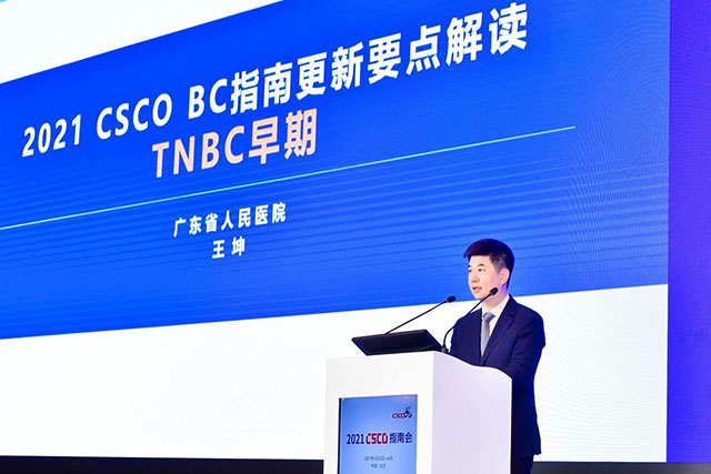 4月23日,2021年中国临床肿瘤学会(CSCO)乳腺癌诊疗指南在北京正式发布。我院肿瘤中心副主任、乳腺肿瘤科主任王坤教授受邀参加发布CSCO乳腺癌指南并做2021版指南“三阴性乳腺癌”章节的演讲。