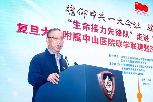 5月21日,“瞻仰中共一大会址 铭记历史汲取力量”——“生命接力先锋队”走进中共一大会址联学联建暨施予受器官捐献志愿服务活动在上海市举行。参会人员集体瞻仰中共一大会址,共同重温入党誓词。中国人体器官捐献与移植委员会主任委员、中央保健委员会原副主任(正部长级)、原卫生部副部长黄洁夫,国家卫生健康委业务主管社会组织党委书记、国家卫生健康委干部培训中心(国家卫生健康委党校)主任(常务副校长)许培海,复旦大学党委副书记、上海医学院党委书记袁正宏,上海市卫生健康委员会医政医管处副处长王成,中国科学院院士、复旦大学附属中山医院院长樊嘉,复旦大学附属中山医院党委书记汪昕等出席会议并发表讲话。