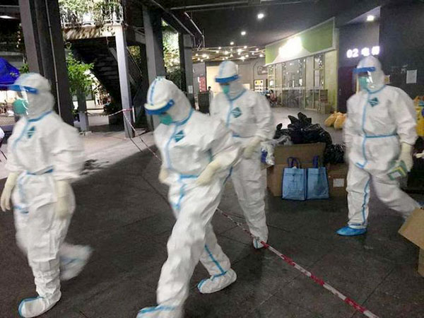 他们一到场来不及吃饭就穿防护服上场,接替当天下午四点钟的上一组。