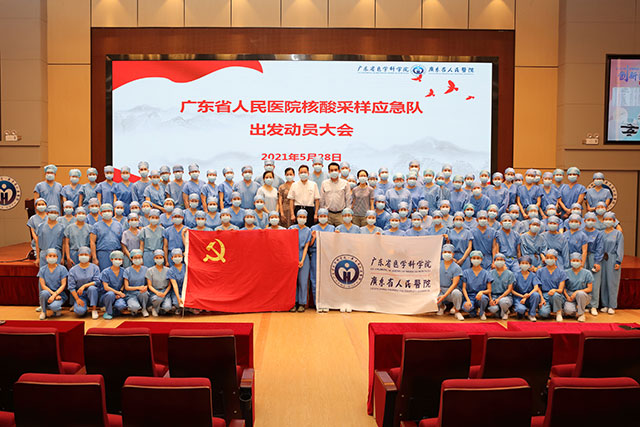 28 日下午 5 点 30 分,广东省人民医院核酸采样应急队 106 名应急队员快速集结出征佛山支援!据悉,这次遴选的 100 名队员,有的是参与驰援湖北的队员再出发,有的是支援过白云机场的守卫者,每一位队员都是骨干精英,其中党员 37 人,35 岁以下青年 91 人。